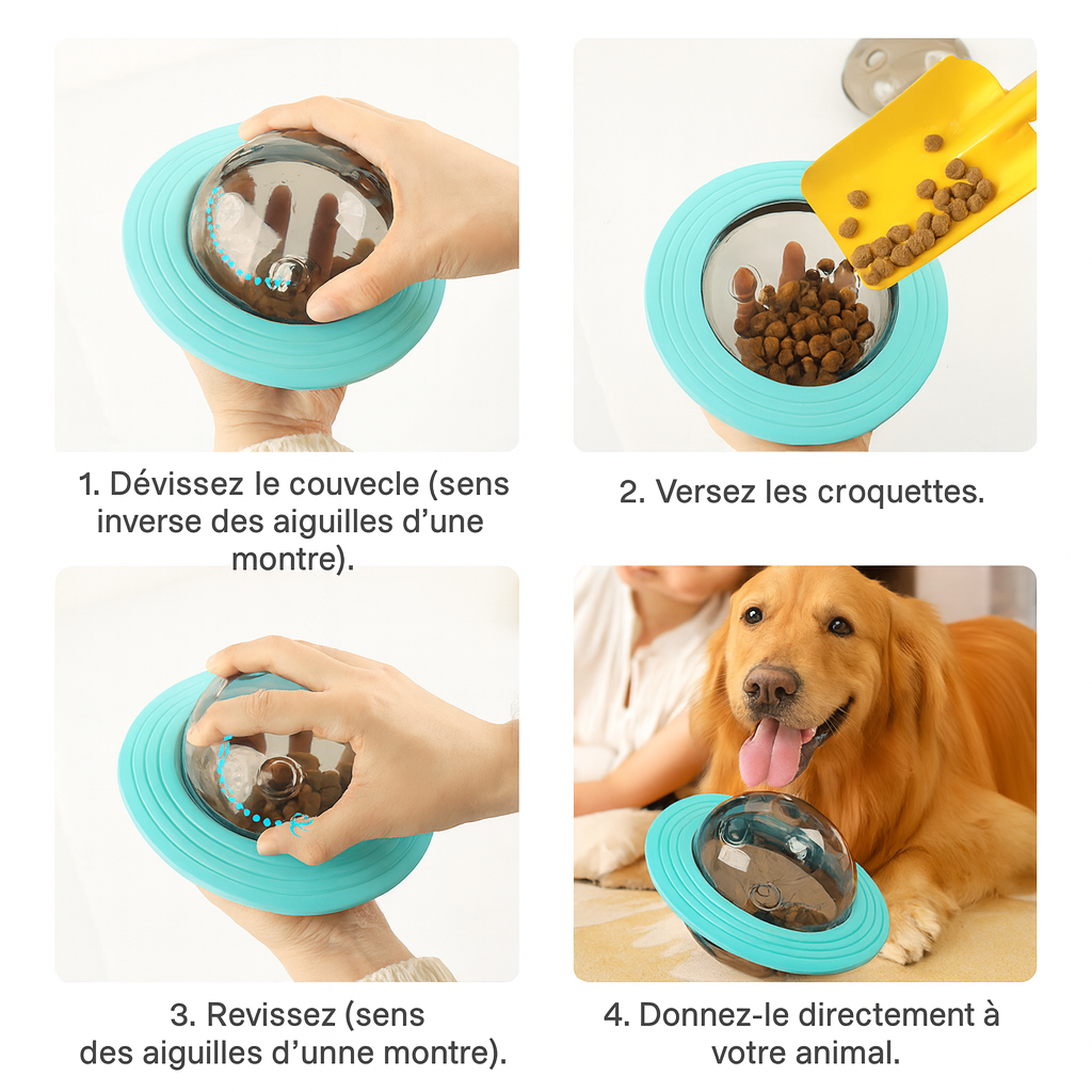- 🍖 Distributeur de friandises : cache des friandises ou croquettes pour prolonger le plaisir et ralentir l’ingestion.