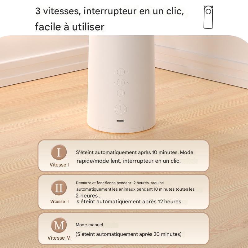 Électrique → pas besoin d’agiter un jouet à la main, tu gardes les mains libres.